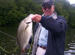 Steve Smith - a longtime client of Greasy Creek Outfitters - with a Claytor Lake hybrid striped bass
